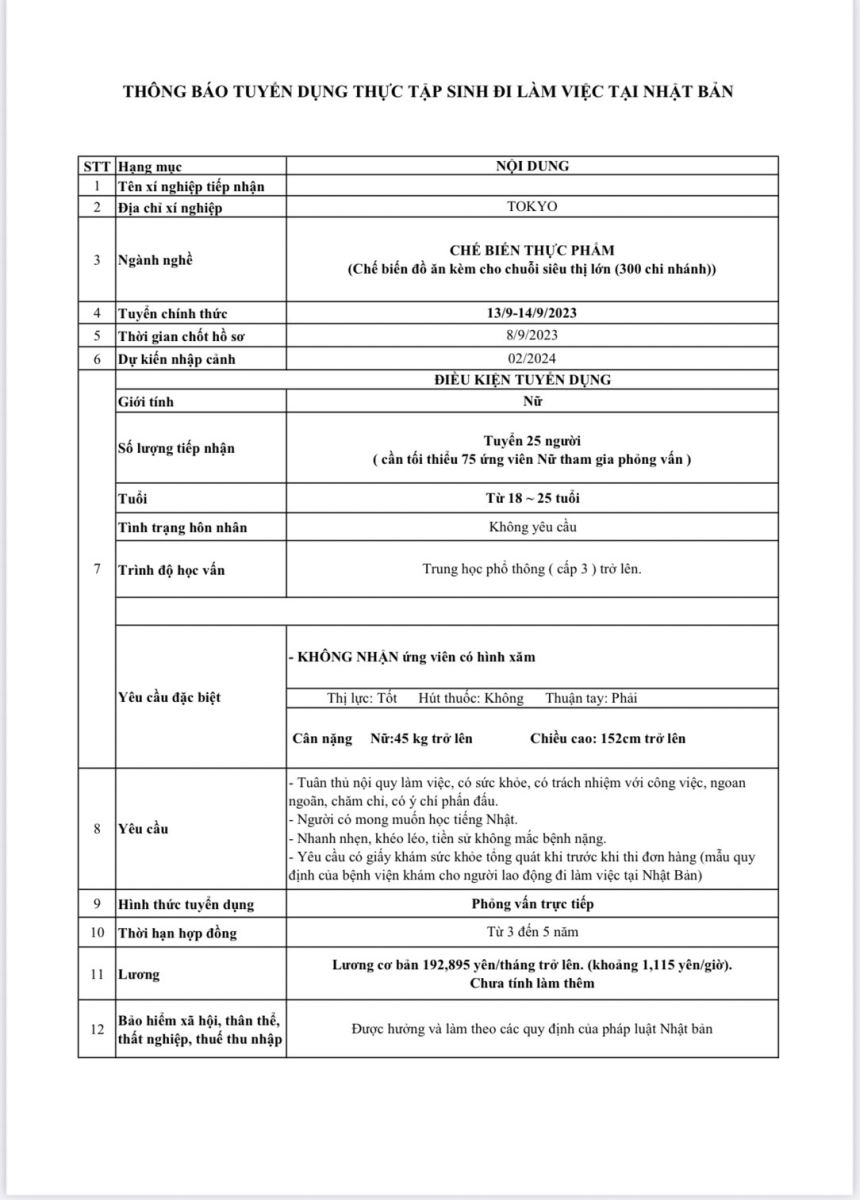 Yêu cầu tuyển dụng: