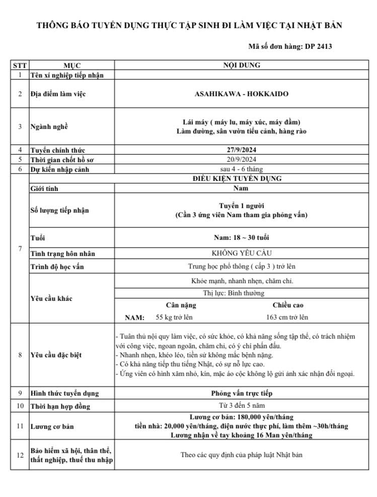 Công việc: Lái máy (máy lu, máy xúc, máy đầm); Làm đường, sân vườn, sân vường tiểu cảnh, hàng rào