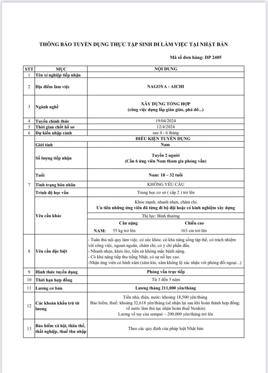 - Có khả năng tiếp thu tiếng Nhật, có sự nỗ lực cao