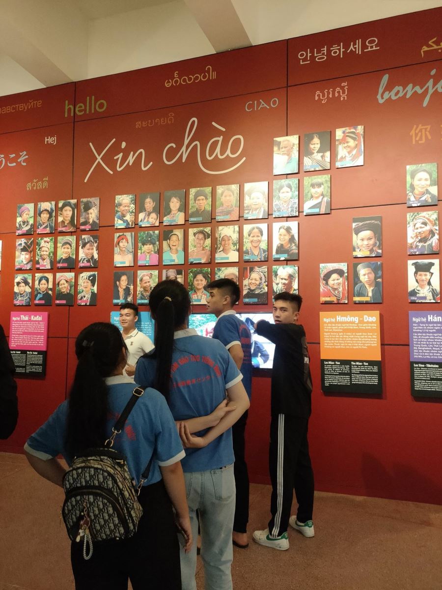 Sau khi trải nghiệm tàu điện, các học viên đã được đưa đến Bảo tàng Dân tộc học Việt Nam, nơi lưu giữ và giới thiệu về sự đa dạng văn hóa của các dân tộc trong cả nước. Tại đây, các bạn đã được hướng dẫn viên dẫn dắt tham quan các hiện vật, trang phục truyền thống, cùng nhiều tư liệu phong phú về cuộc sống và phong tục tập quán của 54 dân tộc Việt Nam.