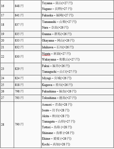 So với thời điểm trước đó, mức lương tối thiểu vùng này tăng từ 26-29 yên/h, mức tăng này có thể tăng cao hơn nữa tuỳ vào quy mô xí nghiệp và tính chất công việc. Cụ thể mức lương tối thiểu vùng 2020 sẽ được điều chỉnh như sau: