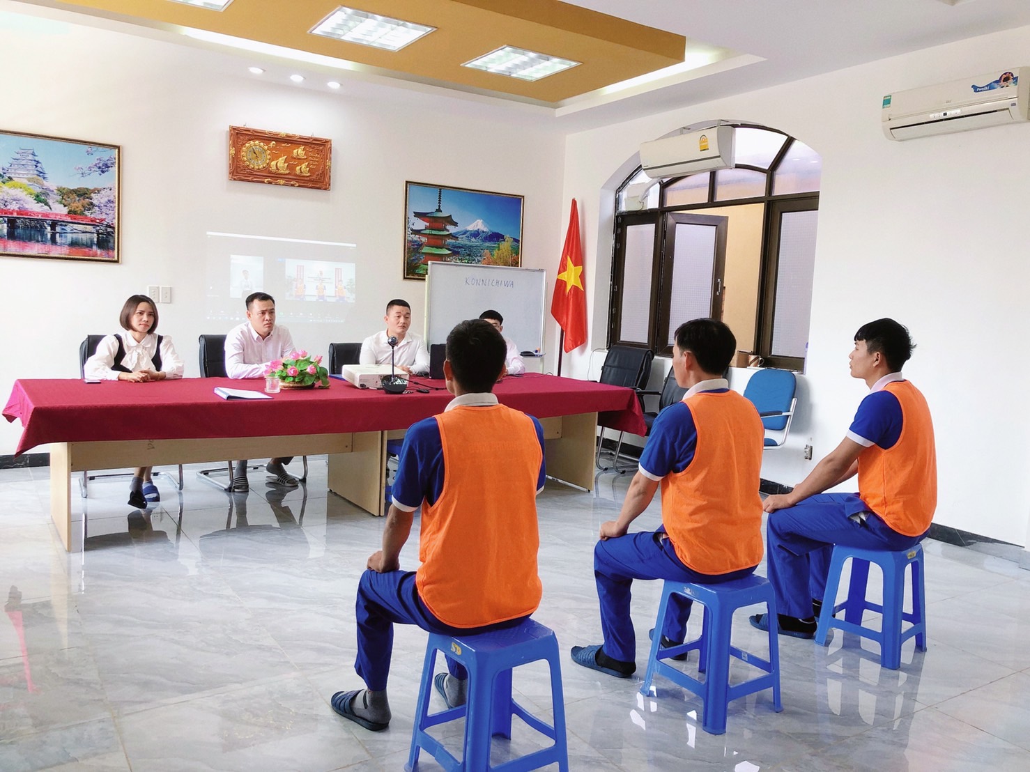 Trước khi đến với buổi phỏng vấn, Công ty luôn chú trọng việc tổ chức luyện tập các bạn ứng viên, bao gồm: tác phong, chào hỏi, giới thiệu bản thân bằng tiếng Nhật để giúp các bạn tự tin thể hiện mình tốt nhất trước các nhà tuyển dụng.