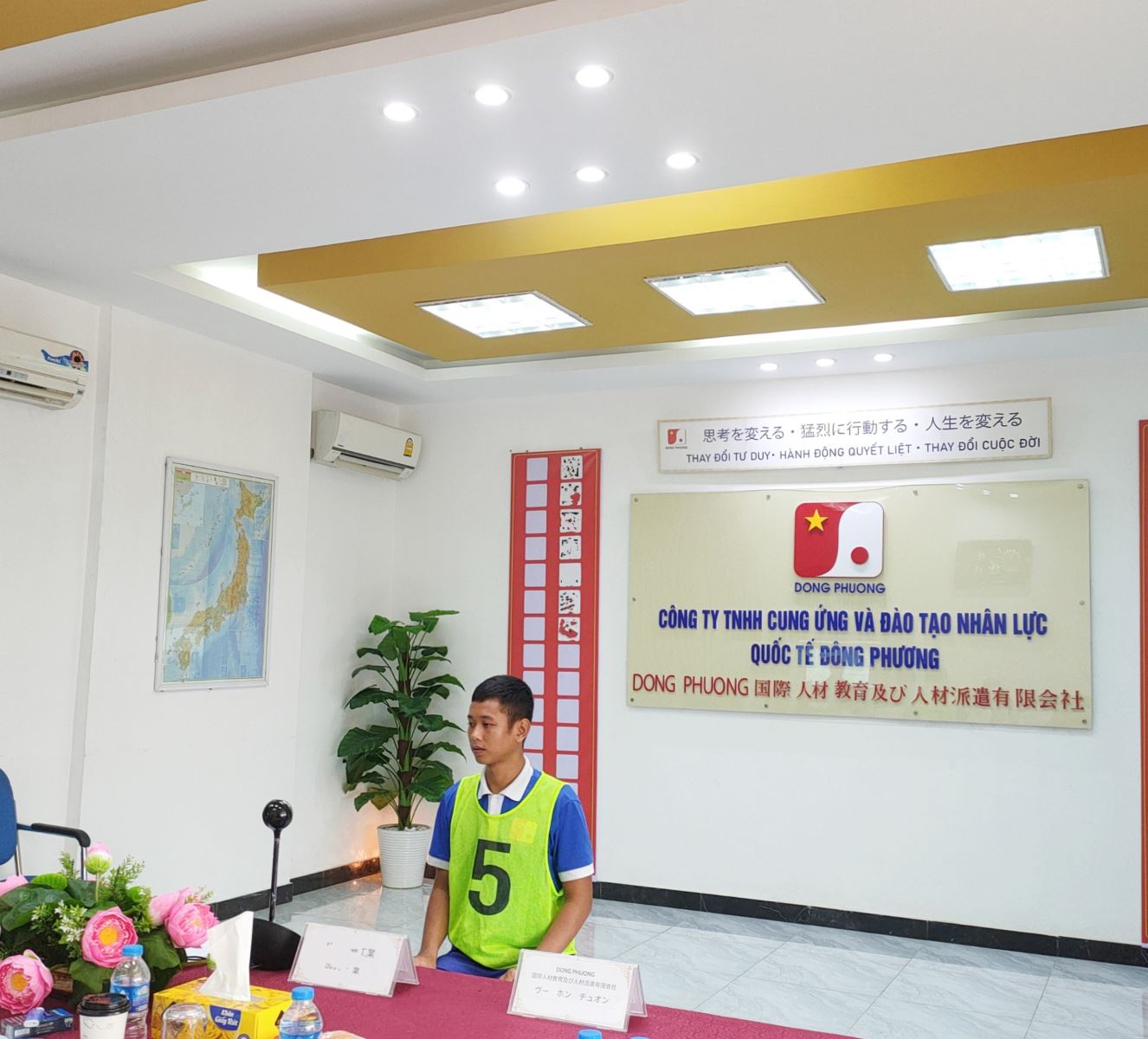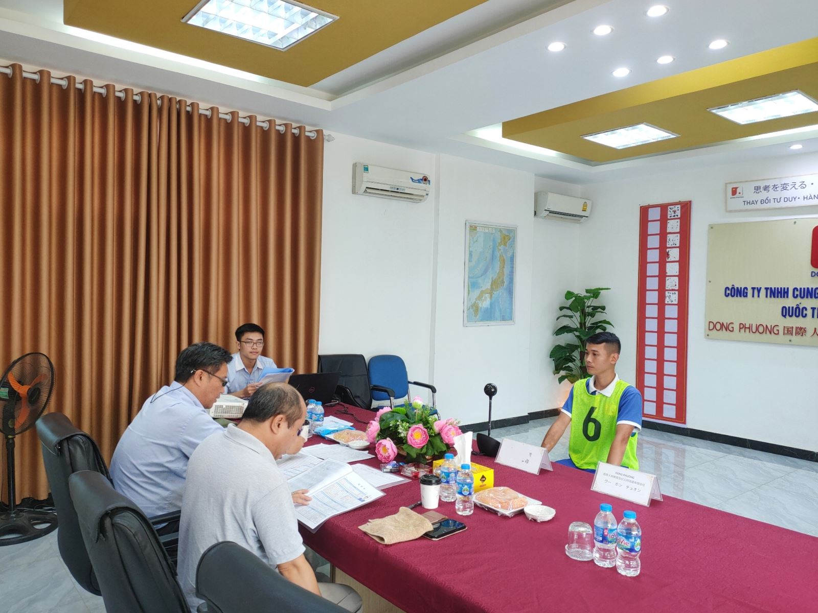 Buổi phỏng vấn được diễn ra ngay tại văn phòng Công ty Quốc tế Đông Phương, với sự tham gia của đại diện Nghiệp đoàn và Giám đốc xí nghiệp tuyển dụng lao động.