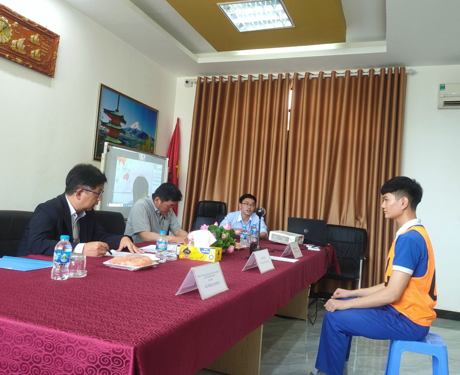 Buổi phỏng vấn được diễn ra ngay tại văn phòng Công ty Quốc tế Đông Phương, với sự tham gia của đại diện Nghiệp đoàn và Giám đốc xí nghiệp tuyển dụng lao động.